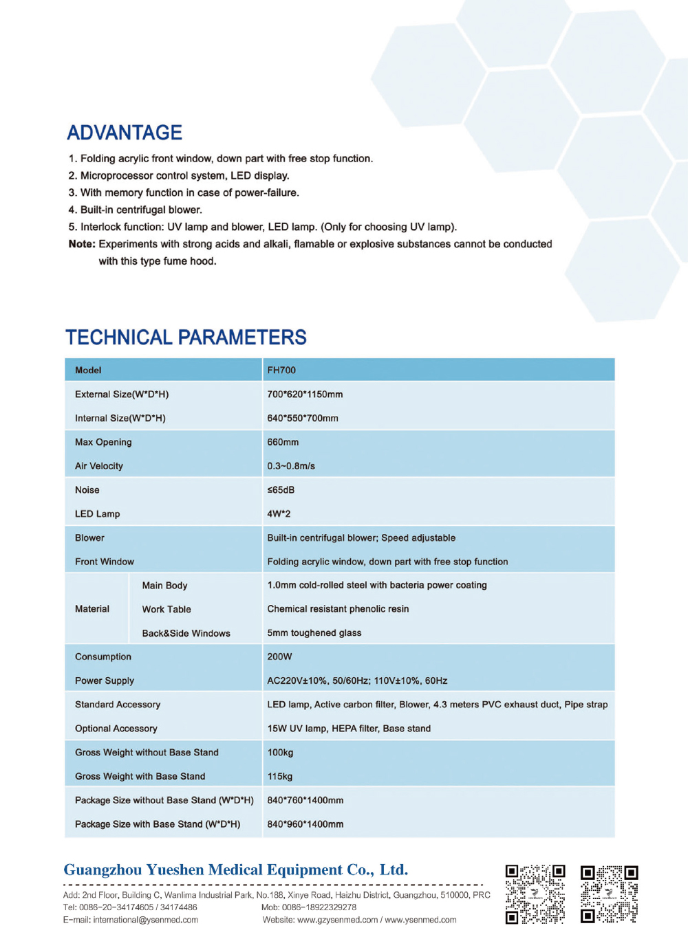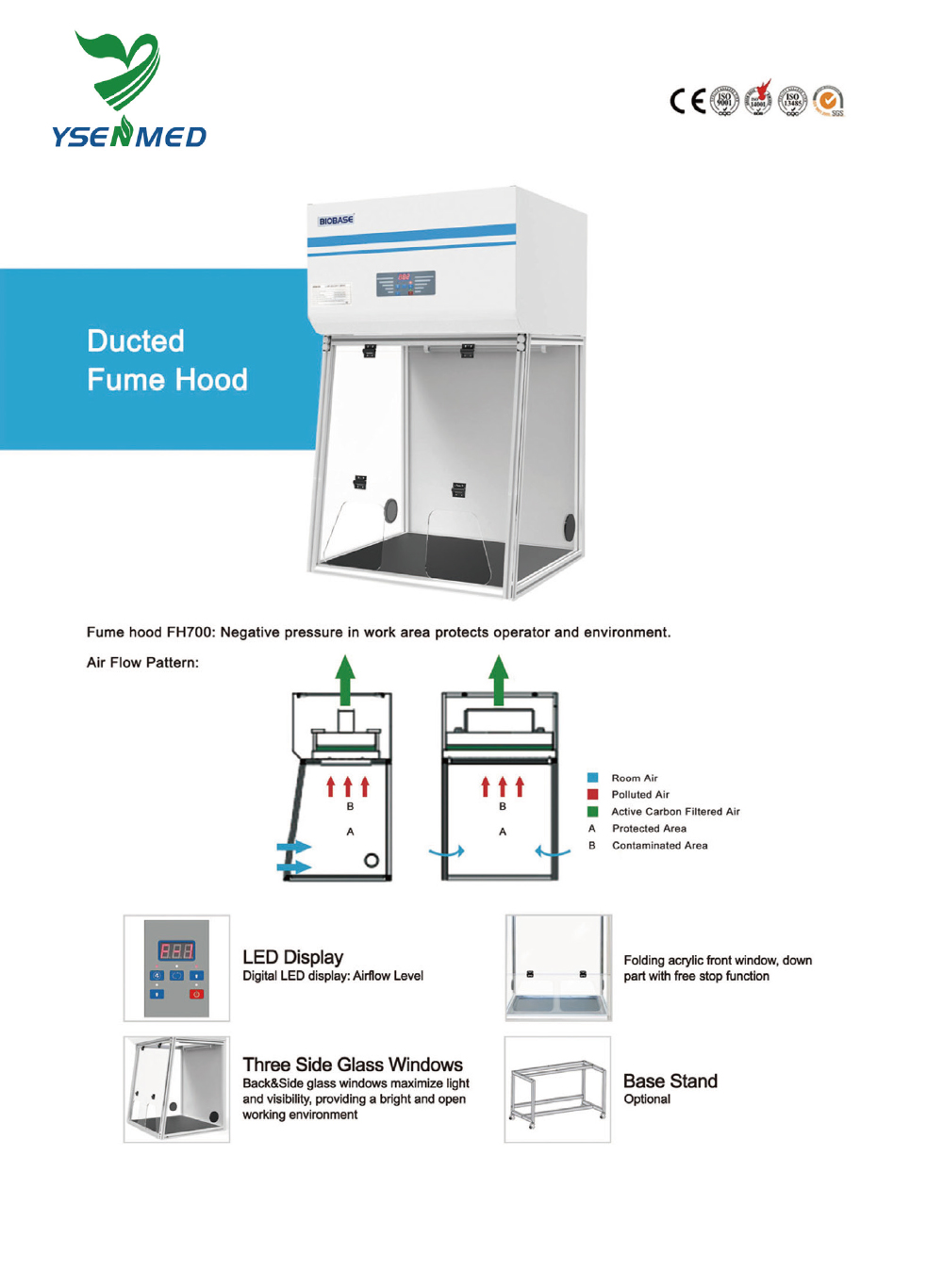 | Optional Accessory | 15W UV lamp, HEPA filter, Base stand | |